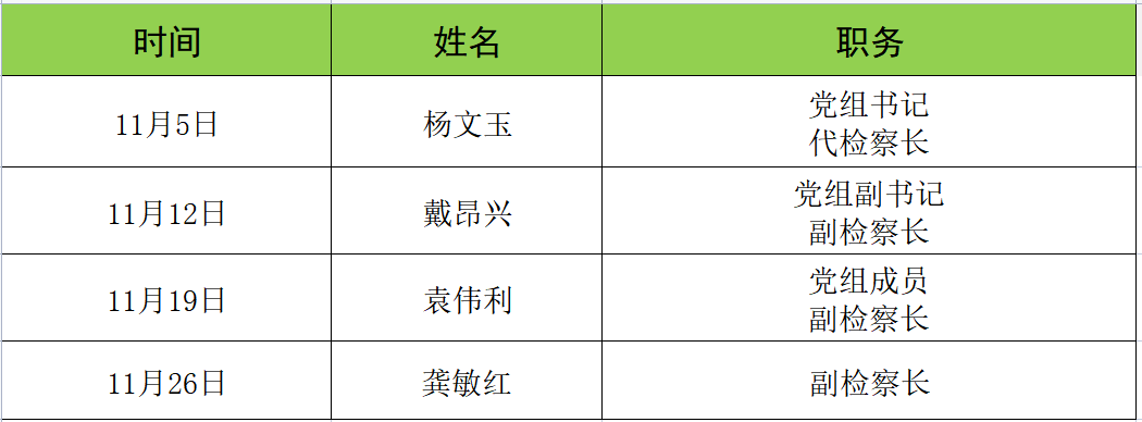 为深入学习贯彻党的二十大精神,认真落实《信访工作条例》,进一步巩固深化群众信访件件有回复工作,更好倾听群众呼声,回应群众诉求,提升12309检察服务中心工作质效。根据工作部署,现将乐安县人民检察院2024年11月份“检察长接访”安排公告如下: