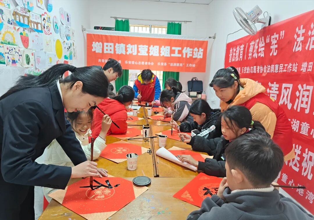 为传承和弘扬中华优秀传统文化,丰富未成年人精神文化生活,乐安县“刘莹姐姐工作室”成员与爱心志愿者协会工作人员一同来到增田镇“刘莹姐姐工作站”开展“泼墨纳新福”活动。