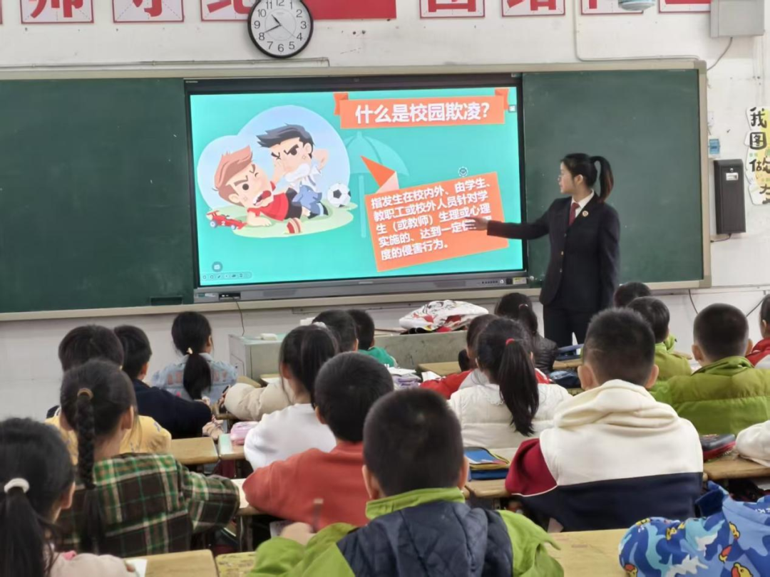 增田镇中心小学、申银万国招携希望小学等学校以案例讲解、角色扮演、情景再现等形式开展主题班会,法治副校长走进课堂为同学们进行专题宣讲,让学生认清欺凌危害,掌握求助技巧,提高自我保护能力,树牢“不做施暴者、不做旁观者、要做守护者”的理念。