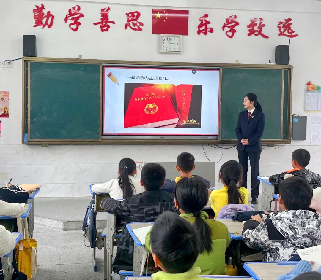 课堂上,“刘莹姐姐”结合《中华人民共和国宪法》中与中小学生有关的规定内容,带领同学们观看普法视频《宪法的独白》,向同学们详细讲述宪法的重要地位、修订历程、具体内容以及国家宪法日设立的重要意义等法律知识。针对校园霸凌、未成年人保护等安全问题,“刘莹姐姐”结合鲜活案例,向同学们普及了宪法在日常生活中的作用,引导学生们增强法律意识,自觉维护宪法权威,争做遵纪守法的好少年。