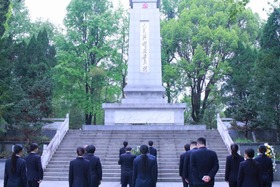 在革命烈士纪念碑前,干警们整齐列队、神情肃穆,向烈士英魂鞠躬默哀、敬献花篮,表达对革命先烈的深切追思和崇高敬意。默哀毕,干警们缓步绕行,共同瞻仰纪念碑,重温革命先烈英雄事迹,深刻感受先烈们浴血奋战、英勇无畏的革命精神。