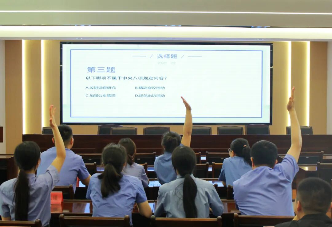 知识问答聚焦《中央八项规定实施细则》《中国共产党纪律处分条例》等内容,以现场抢答的方式全面考查青年干警对纪律作风知识的掌握程度。活动中,青年干警们全神贯注、踊跃答题,充分展现了青年的活力风采和丰富的知识储备。