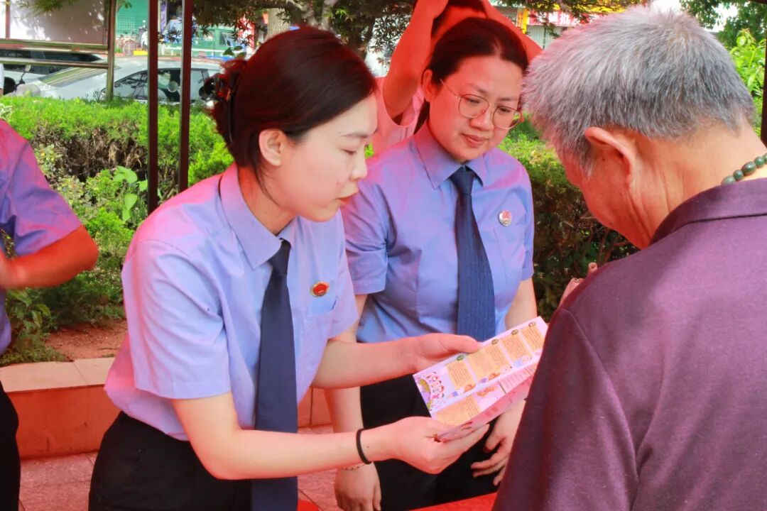 当日下午,乐安县人民检察院青年干警与县城市社区管委会城西社区工作人员一同来到山青花苑广场,开展志愿服务活动。活动现场,工作人员通过设立法律咨询台、发放普法宣传资料和面对面讲解等方式,重点围绕防诈骗、反家庭暴力、消费者权益保护等群众关心的内容,结合典型案例,用通俗易懂的语言向群众普及法律知识,引导群众增强法律意识和法治观念。