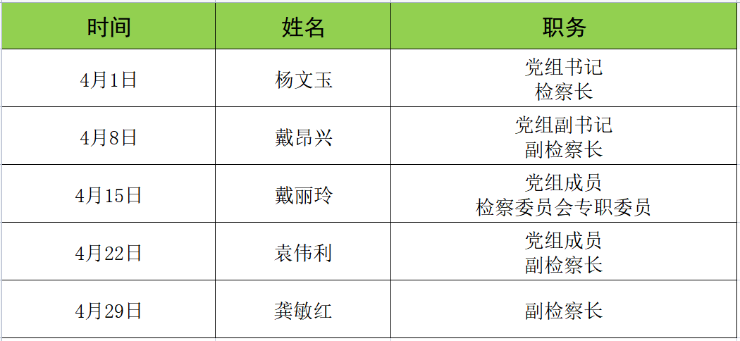 为深入学习贯彻党的二十大精神,认真落实《信访工作条例》,进一步巩固深化群众信访件件有回复工作,更好倾听群众呼声,回应群众诉求,提升12309检察服务中心工作质效。根据工作部署,现将乐安县人民检察院2025年4月份“检察长接访”安排公告如下: