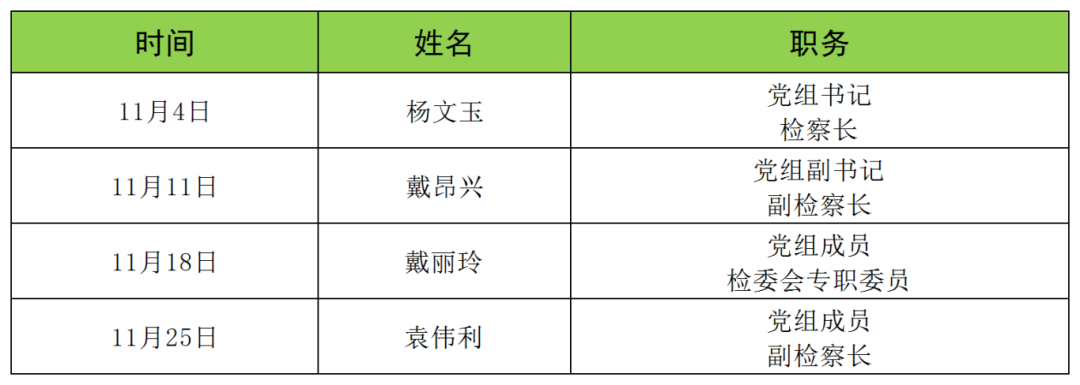 为深入学习贯彻党的二十大精神,认真落实《信访工作条例》,进一步巩固深化群众信访件件有回复工作,更好倾听群众呼声,回应群众诉求,提升12309检察服务中心工作质效。根据工作部署,现将乐安县人民检察院2025年11月份“检察长接访”安排公告如下: